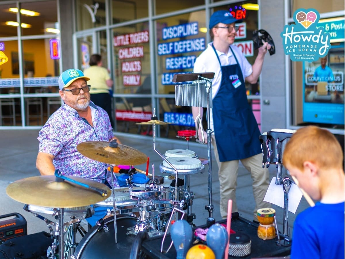We are filled with gratitude after an incredible Grand Opening weekend at Howdy Homemade Ice Cream in Lee’s Summit! Howdy Homemade Ice Cream is a dream two years in the making. The community’s energy and support have been incredible. Lines extended out the door nearly all weekend, and the Heroes behind the counter were thrilled to see so many people eager to experience Amazing Ice Cream, Served by Amazing People. Local musician Carl Cherrito, Power Percussion, brought the celebration to life with phenomenal live music, and Highland Dairy made a huge statement by parking their giant signature cow statue in the parking lot, which became an instant photo favorite!